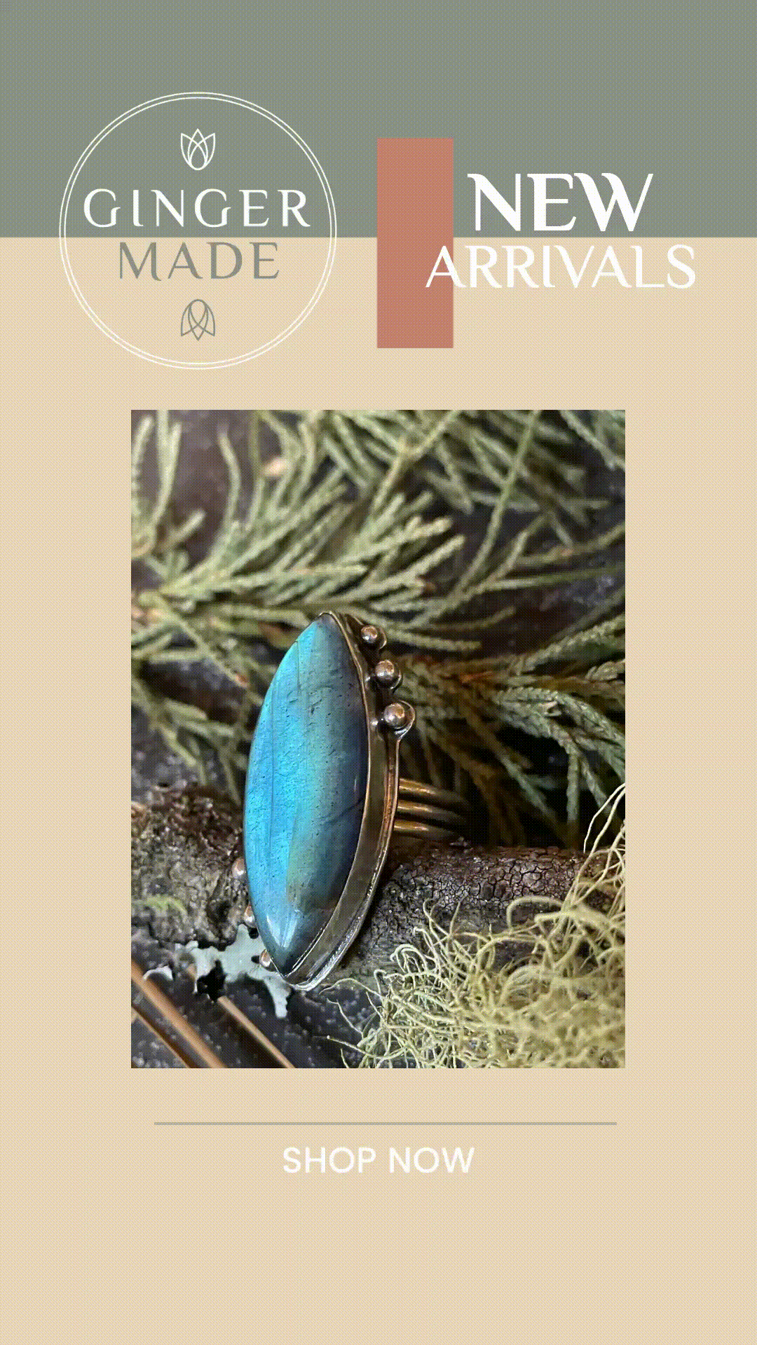 Problem: GingerMade's branding, website, and collateral did not match their unique big, bold jewelry designs and sustainability values.Solution: Developed a branding strategy that aligned with GingerMade's design aesthetic and sustainability values. Designed a website and collateral materials that reflected their brand and showcased their products.